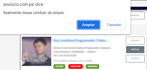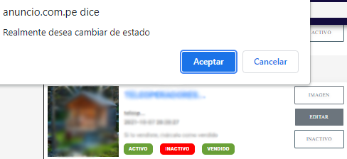 2. se mostrara una alerta si realmente desea cambiar de estado, seleccione aceptar